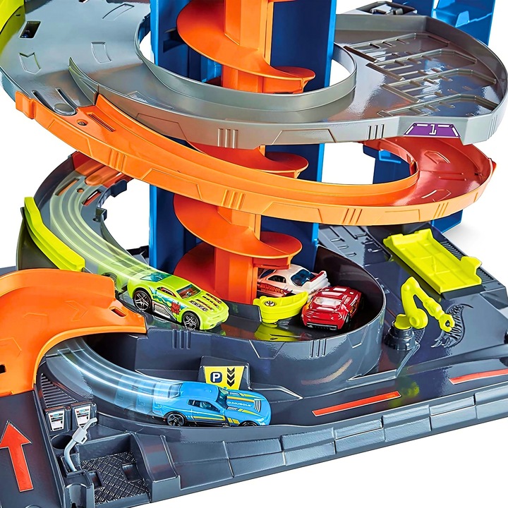 Zestaw Hot Wheels™ City Zakręcony Megagaraż Parking to wyśmienita zabawa na aż 4 poziomach.
