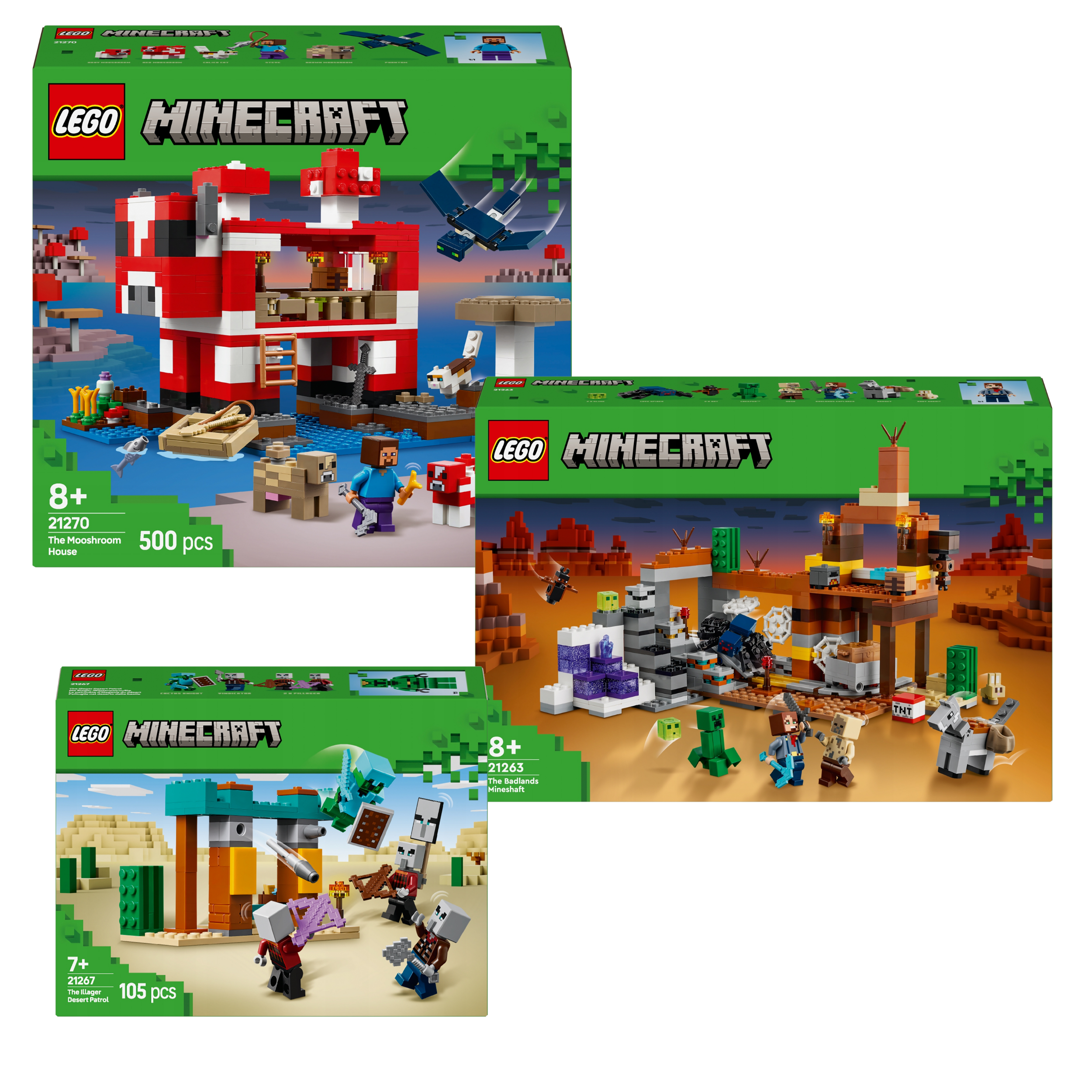LEGO Minecraft 21270 Dom krowy 21263 Kopalnia 21267 Pustynny patrol