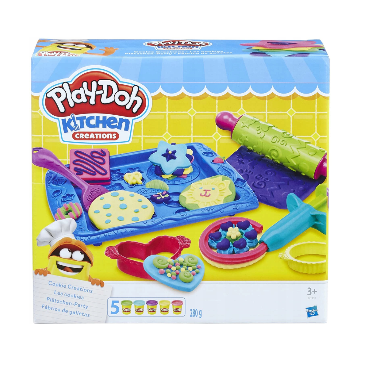 Ulep kolorowe, ciastolinowe ciasteczka z tym kulinarnym zestawem Play-Doh! Dzięki specjalnej foremce wypieczesz liczne słodkości, które następnie udekorujesz w komplet wzorów specjalnym wałkiem!