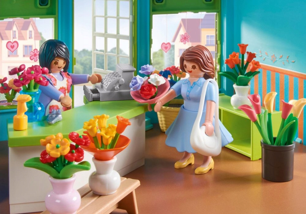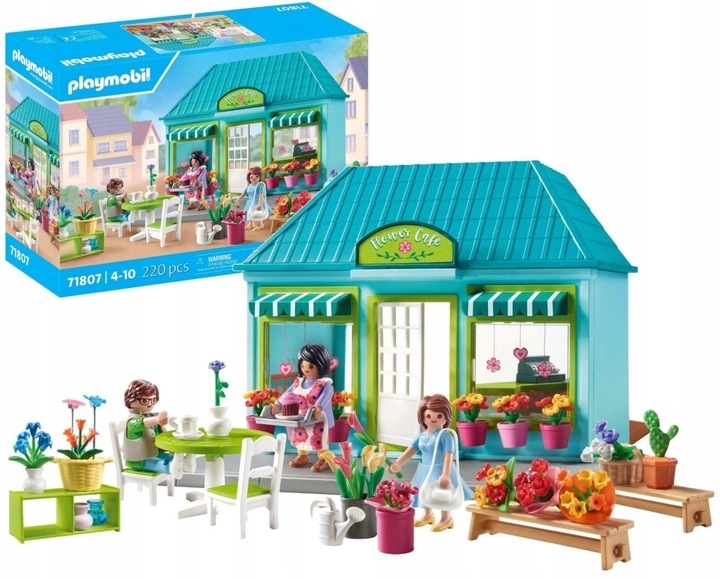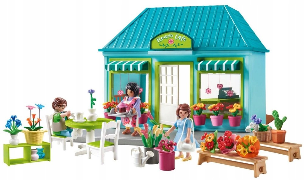 Kwiaciarnia Playmobil jest uroczym budyneczkiem, który łączy w sobie tętniący życiem targ kwiatowy z przytulną kawiarnią. Niezależnie od tego, czy układasz wspaniałe bukiety, czy serwujesz kawę i ciasto, każda wizyta jest okazją do kreatywnej zabawy!